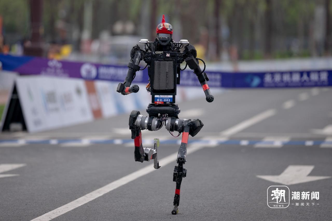 齊天大聖隊自主導航機器人“閃電”以50分26秒的淨時成績奪冠,打破人類半馬紀錄。潮新聞記者 倪雁強 攝