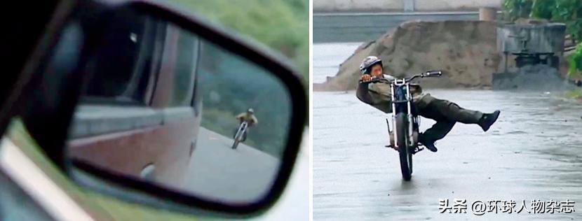 ·2006年,張雪騎摩托車追逐電視臺車輛,並在節目組前秀車技。(視頻截圖)