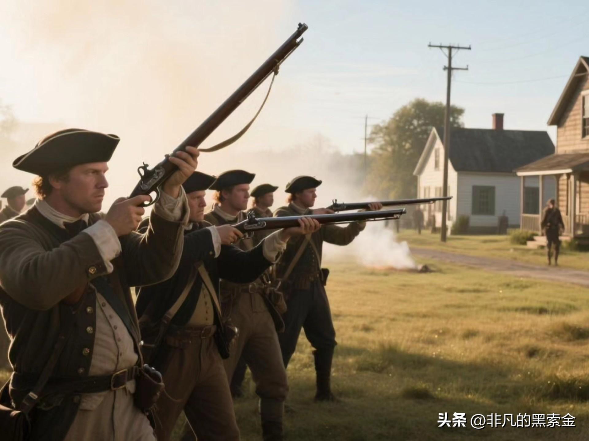 美國的歷史書裏也反覆講述着那個激動人心的起源故事:1775年列剋星敦的槍聲打響了獨立戰爭第一槍,手持私人武器的民兵們對抗着當時世界上最強大的大英軍隊。