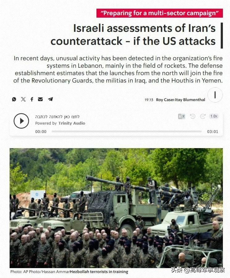 更讓以色列軍方感到不安的是,他們發現伊朗的三支盟軍都動起來了!以軍消息源稱,最近幾天,以色列情報部門觀察到黎巴嫩真主黨導彈部隊在黎巴嫩的異常移動。軍方認爲,如果美國打擊伊朗,該組織將向以色列境內發射導彈(火箭彈)。雖然黎巴嫩真主黨遭受了重創,但整體實力恢復很快。而且佔據地理優勢,讓以色列軍隊沒有預警反應時間,關鍵是他們會在美伊戰爭爆發時牽制和消耗以色列寶貴的防空資源。