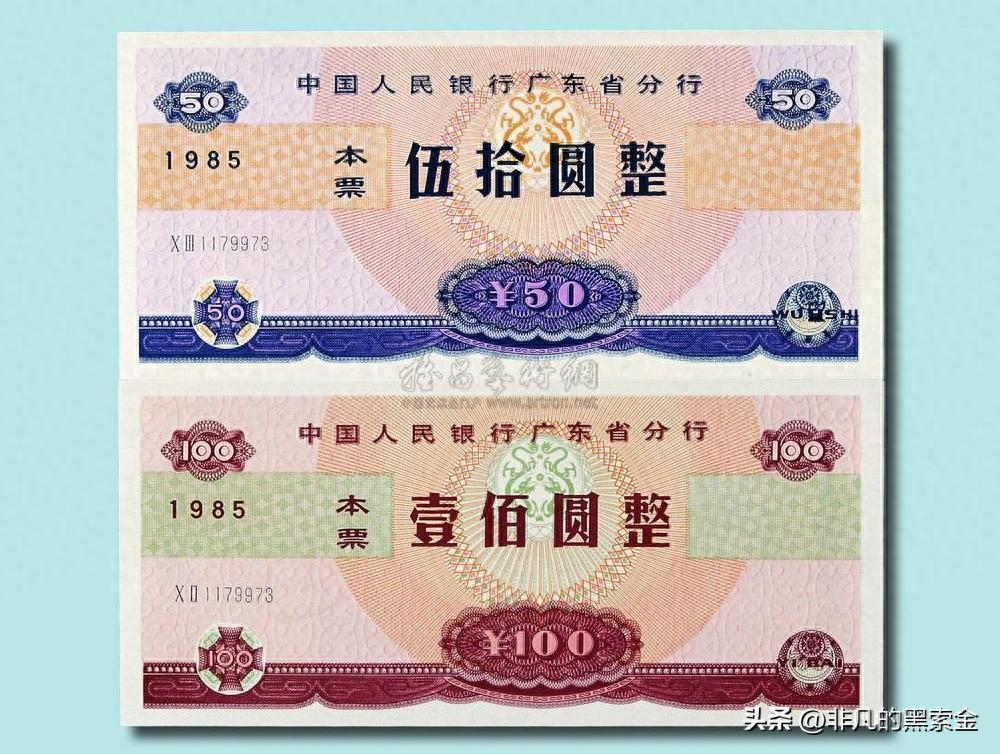 於是在1985年2月4日,央行廣東省分行和中行珠江路分行聯合發行了面額爲100和50的銀行本票。