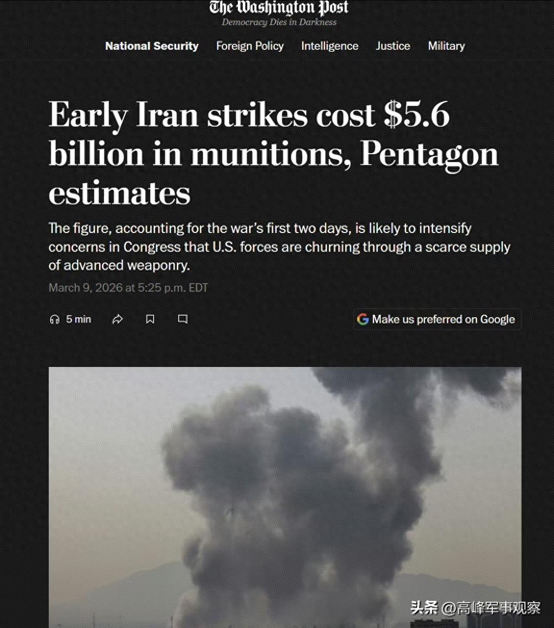 在3月9日的伊朗導彈襲擊中,以色列軍方的一個通訊雷達站被徹底摧毀。美國電視臺的報道背景畫面中,無意中拍到了伊朗導彈避開攔截導彈擊中特拉維夫目標的完整鏡頭。在美媒在特拉維夫街頭的採訪中,鏡頭中的整條街的建築物都被炸成廢墟,讓人聯想到被以色列軍隊炸成廢墟的巴勒斯坦加沙地帶。美媒視頻報道下面的西方網友評論稱,伊朗導彈一直炸下去,以色列的建築或“加沙化”。