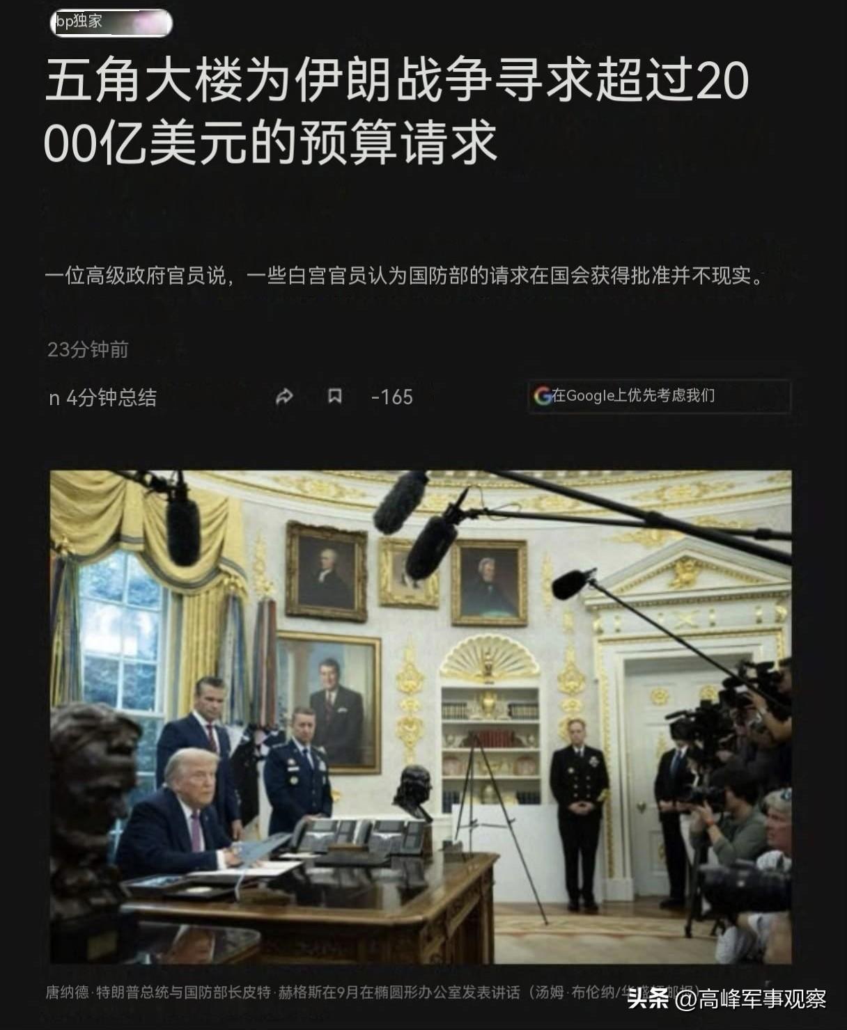 白宮顧問斯蒂芬·米勒對福克斯新聞頻道表示,他們正在對伊朗進行全面戰爭,並稱美軍士兵在追擊目標時不受束縛。隨後,美國媒體統計的數據顯示,美軍從地面入侵伊朗的概率上升到65%了。與此同時,五角大樓要求爲正在舉行的戰爭追加2000億美元的預算。外界懷疑,與之前的伊拉克戰爭和阿富汗戰爭不同,美軍這次除了以色列軍隊之外,幾乎是“孤軍作戰”(因爲以色列軍隊的武器彈藥幾乎完全依賴美國供應)。