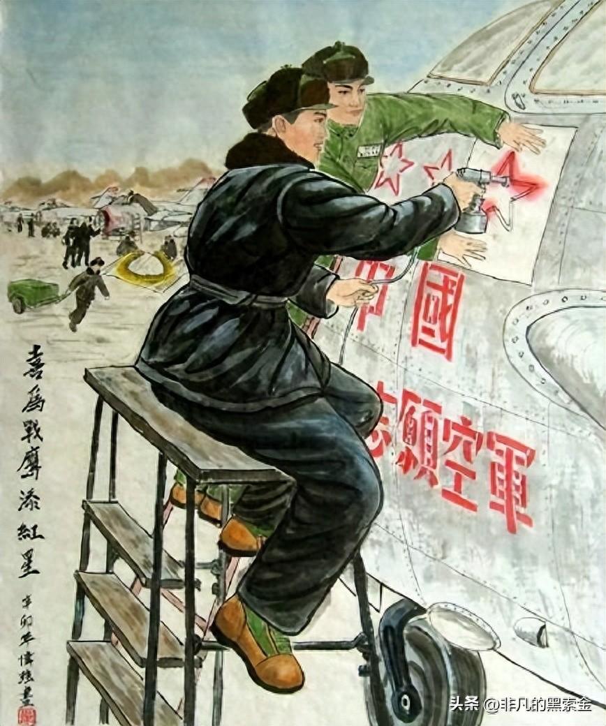 【國畫《喜爲戰鷹塗紅星》,還是萌新的中國空軍怎麼都不會想到,第一個對手就是最強的美國空軍】