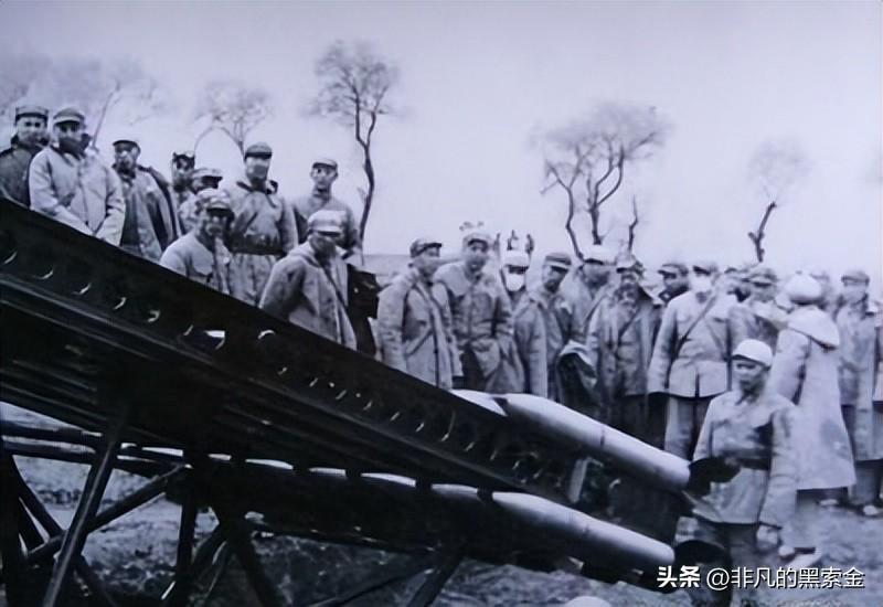 【志願軍戰士圍觀剛剛運抵的火箭炮】
