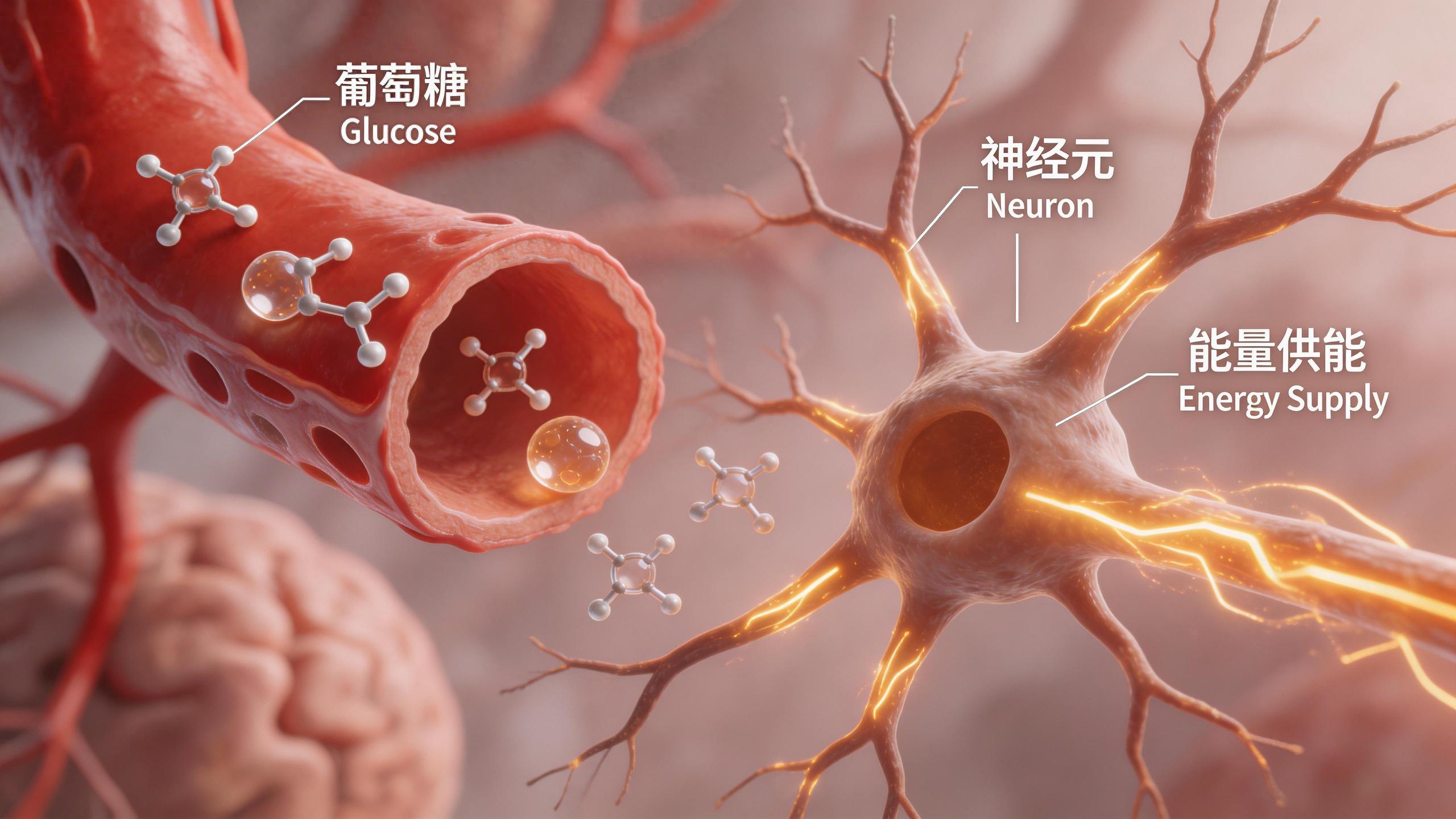 我們的大腦只佔體重的2%,卻是個耗能大戶,消耗全身20%-30%的能量。關鍵在於,大腦細胞非常“挑剔”,它們幾乎只利用血液中的葡萄糖來工作,無法像肌肉那樣使用脂肪供能。腦內儲存的糖原又極少,這就意味着它需要持續、穩定的葡萄糖供應。