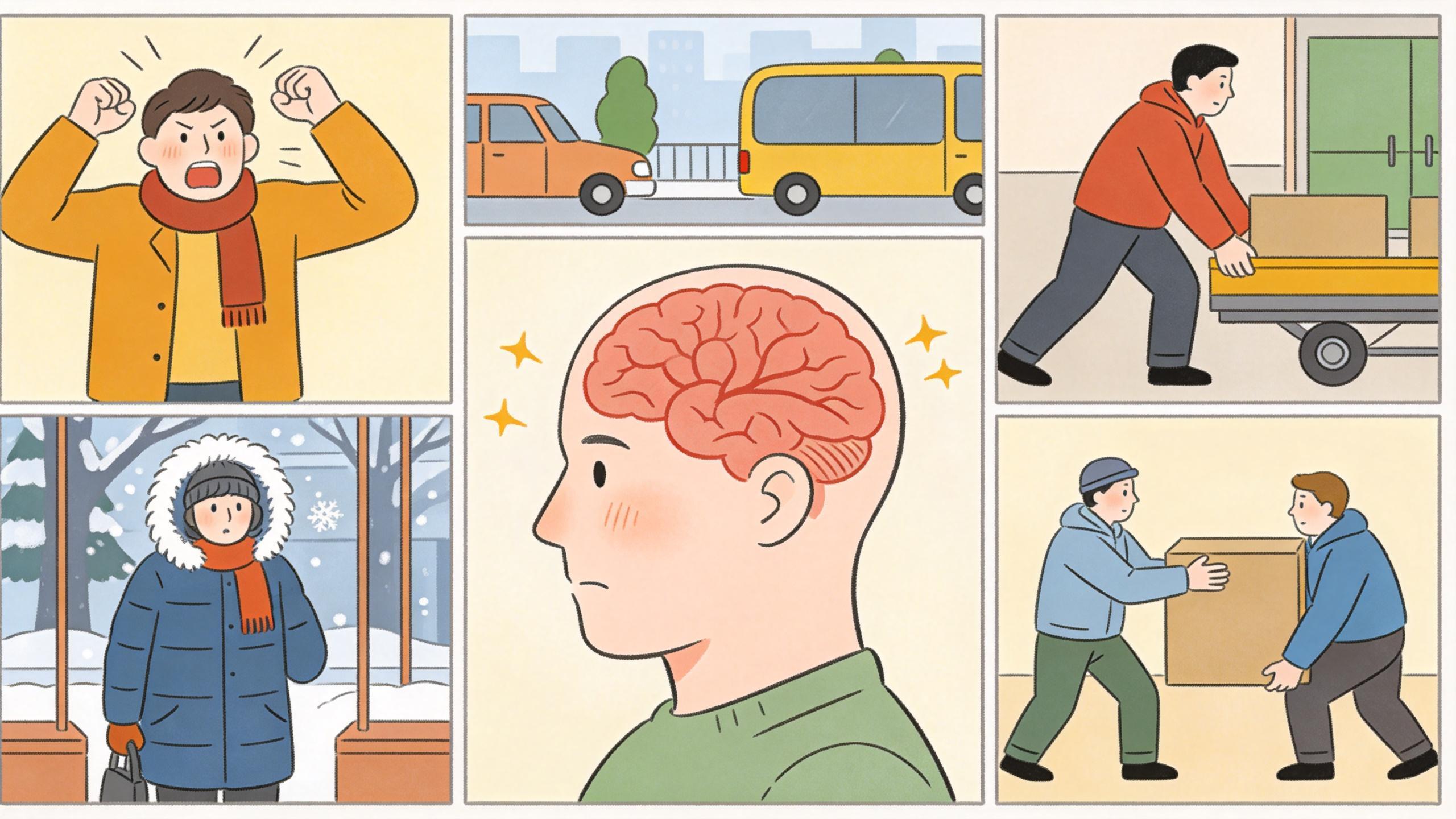 - 突然的寒冷刺激:寒冬清晨,從溫暖的被窩走到冰冷的室外,血管會急劇收縮,血壓驟升。數據顯示,氣溫驟降時,腦出血的發生率會顯著上升。