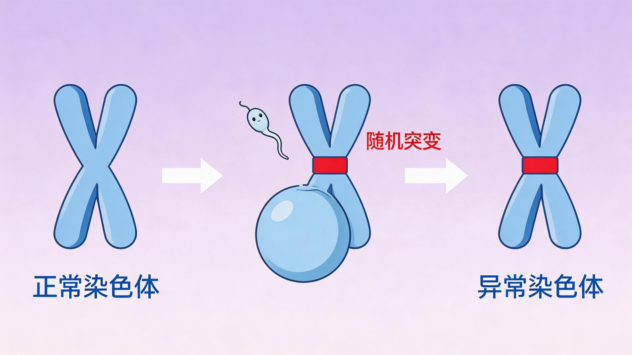 除了這種來自父母的“潛伏”基因,生命本身在最初締造時,也可能產生全新的“筆誤”。大約有五分之一的遺傳病,其根源是精子、卵子結合或胚胎早期分裂時,染色體或基因序列發生了隨機錯誤。比如最常見的唐氏綜合徵,絕大多數患兒的父母染色體都完全正常。這類新發突變無法從家族歷史上預測,是完全隨機的事件,這也是爲什麼許多罕見病家庭完全沒有相關病史。