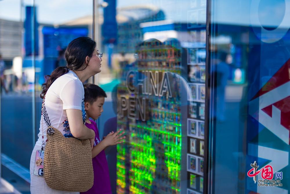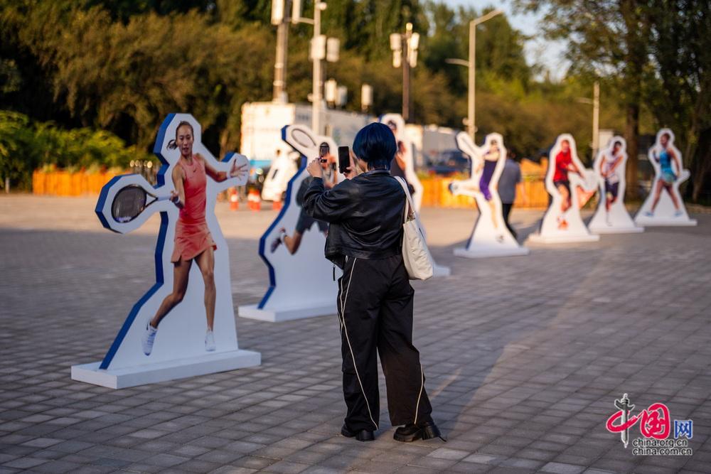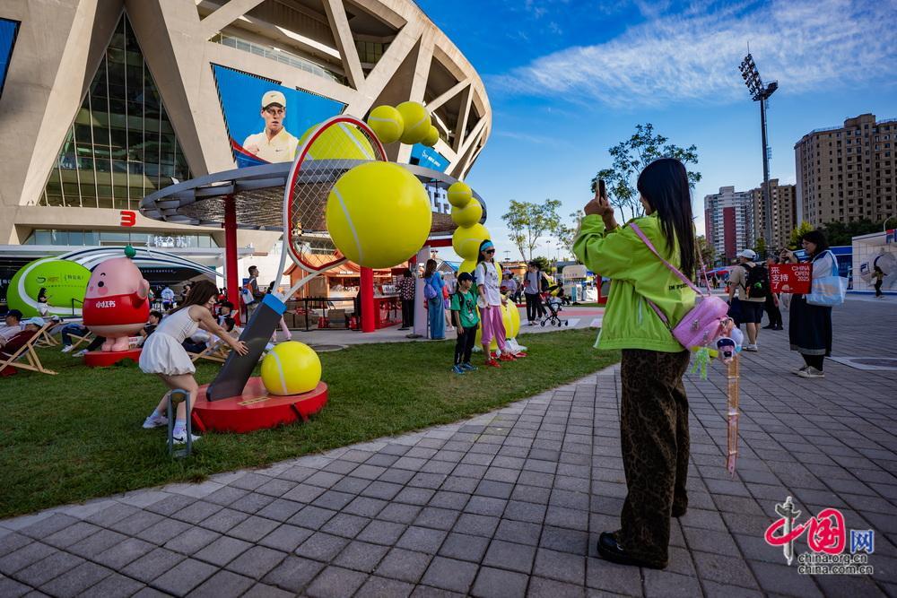 觀衆在中國網球公開賽現場的打卡點拍照留念。中國網記者 鄭亮攝