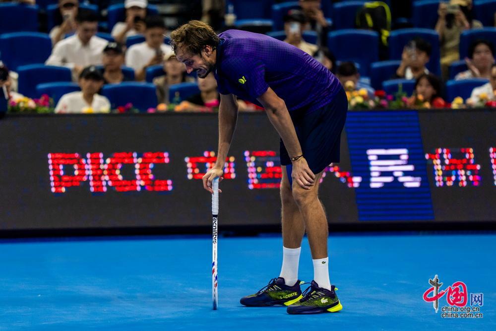 2025年9月30日,俄羅斯網球名將梅德韋傑夫在中國網球公開賽男單半決賽中因傷退賽。中國網記者 鄭亮攝