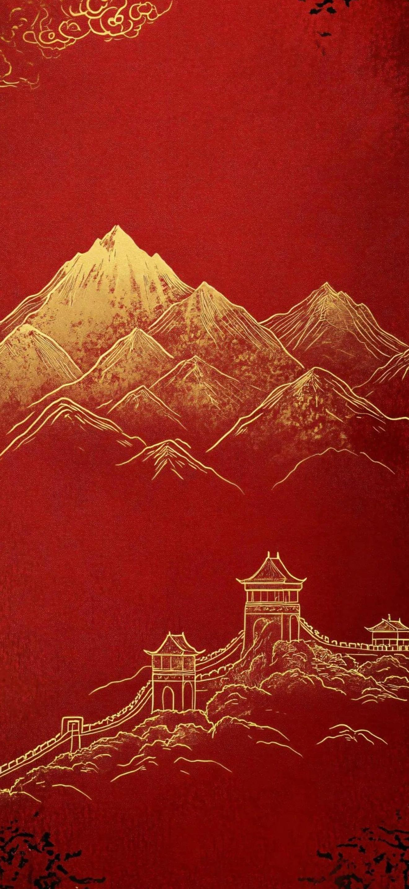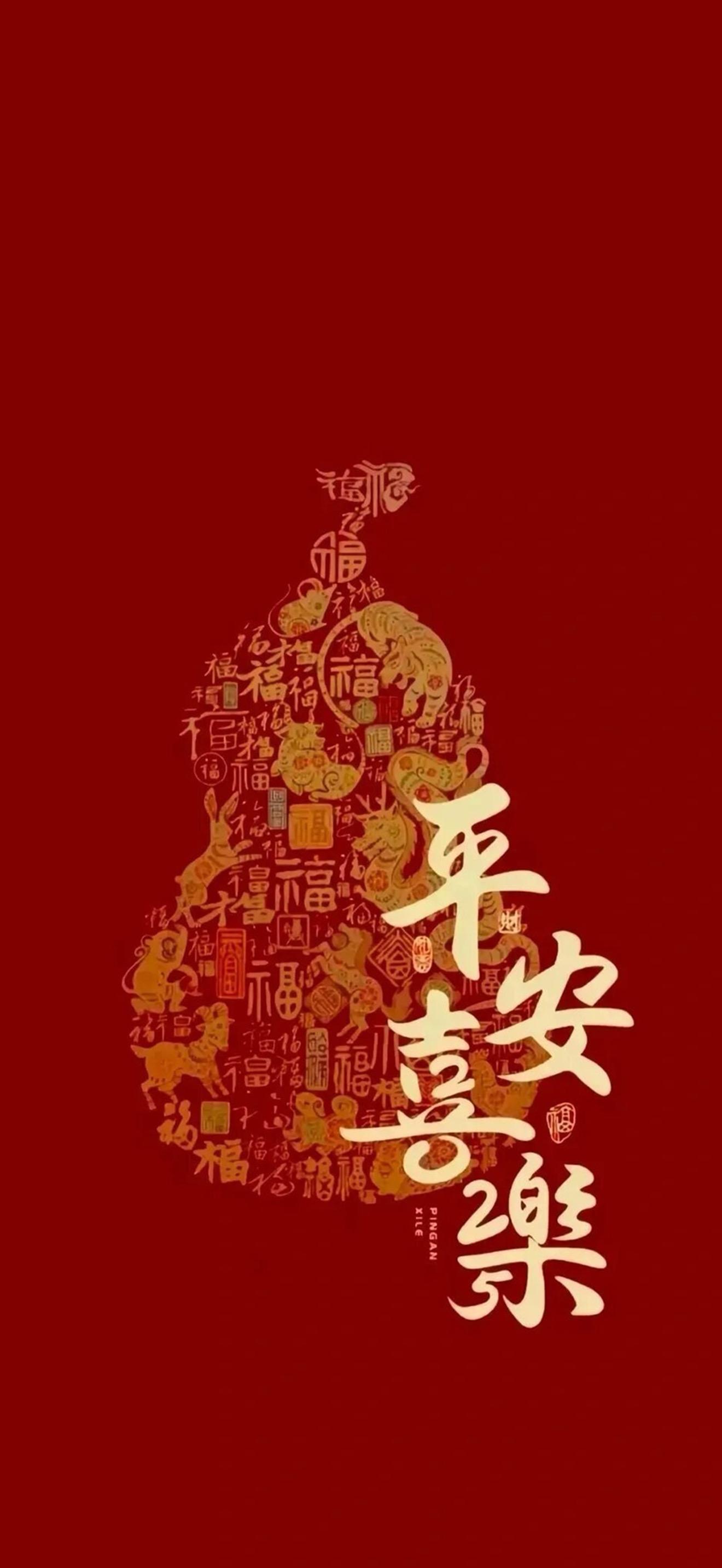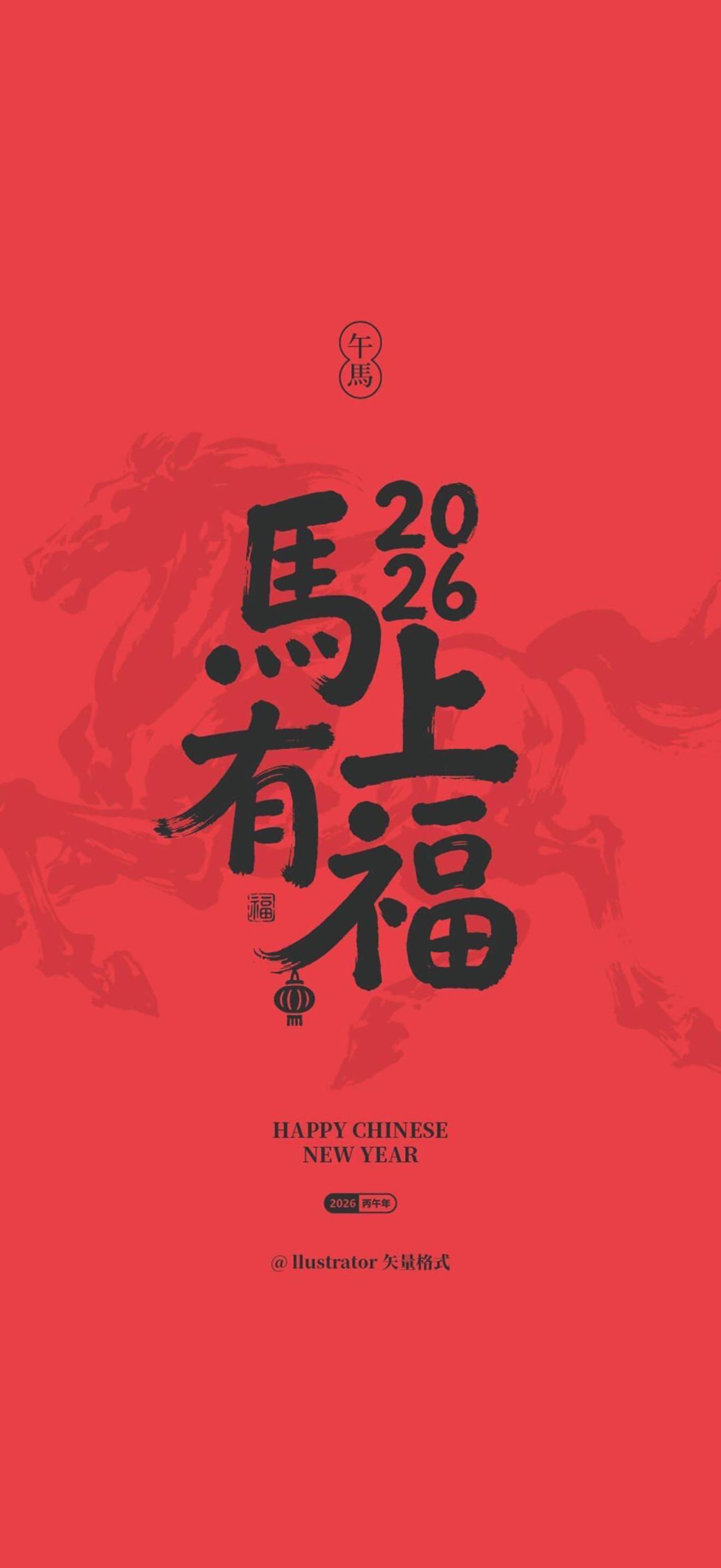 2026新年紅色喜慶好運壁紙。