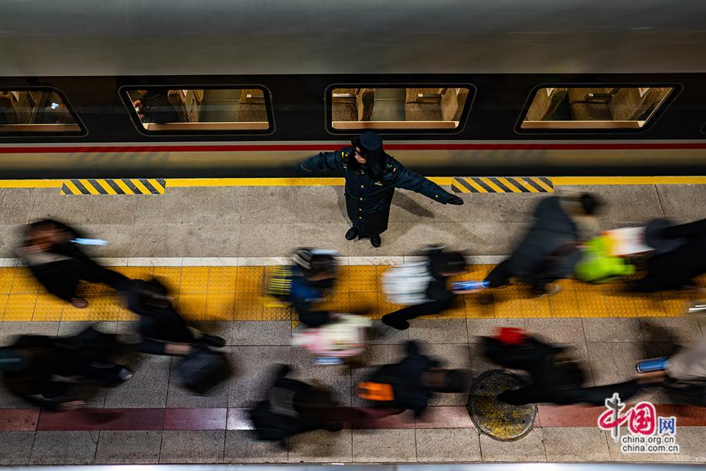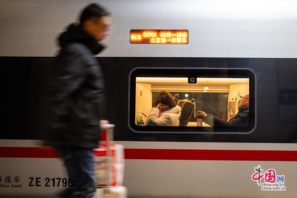 2月2日0時40分,K4069次列車從北京西站平穩駛出,標誌着國鐵北京局2026年春運工作正式拉開帷幕。中國網記者 鄭亮攝