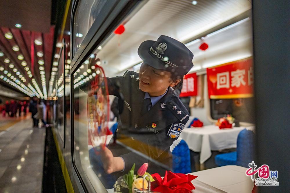 2月2日,北京局2026年春運工作正式拉開帷幕,春運首班列車車廂裝飾一新年味兒十足。中國網記者 鄭亮攝