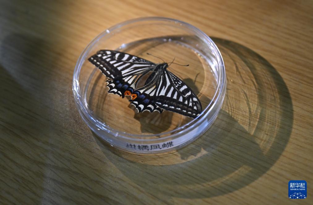 2月2日,在重慶大學深空探測聯合研究中心,現場展示的柑橘鳳蝶標本。新華社記者 陳誠 攝