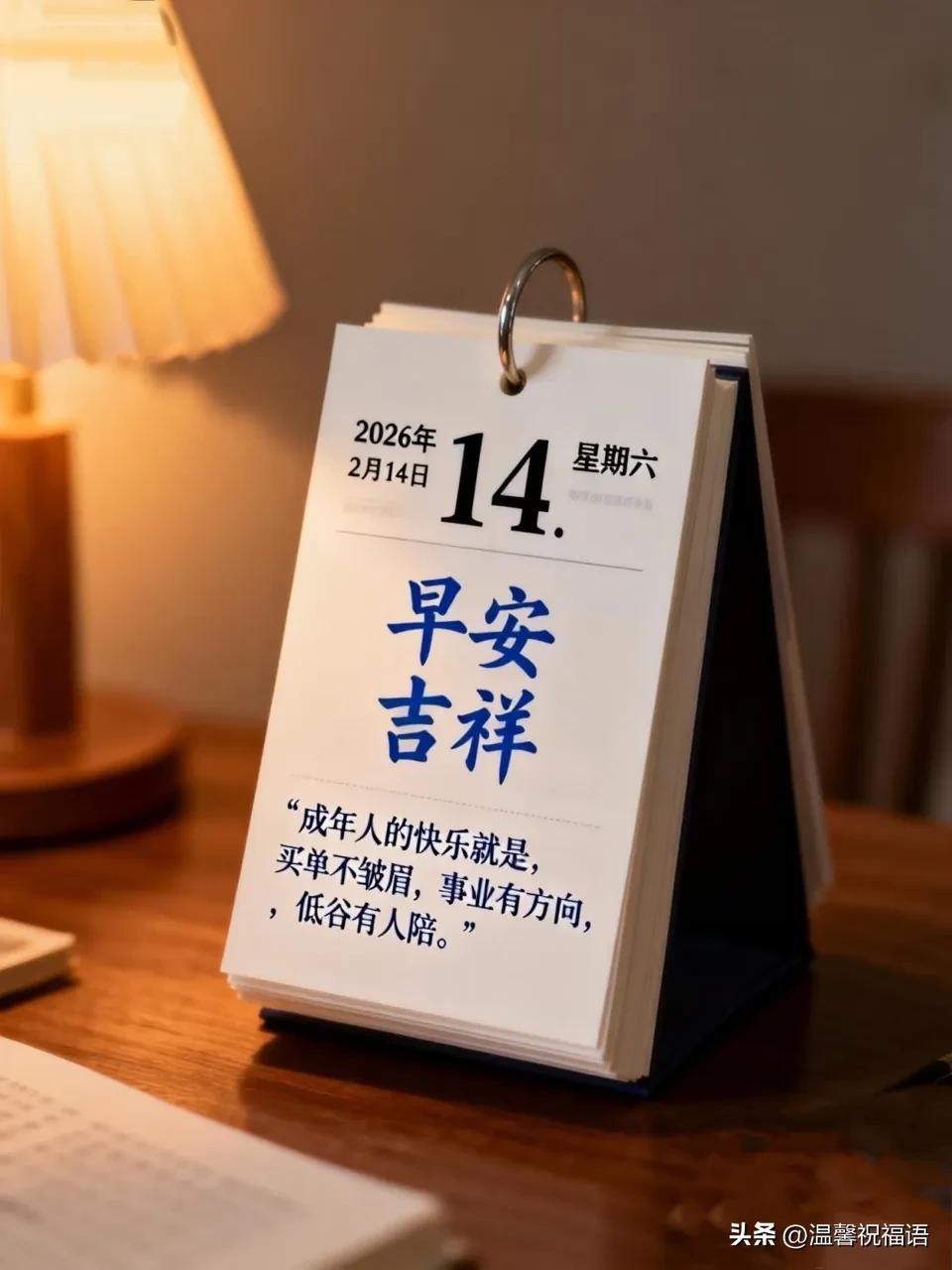 今天是2026年2月14日星期六農曆臘月二十七️七九第二天。西方情人節。 早安吉祥 農曆臘月二十七,年味漸濃,人間至暖。