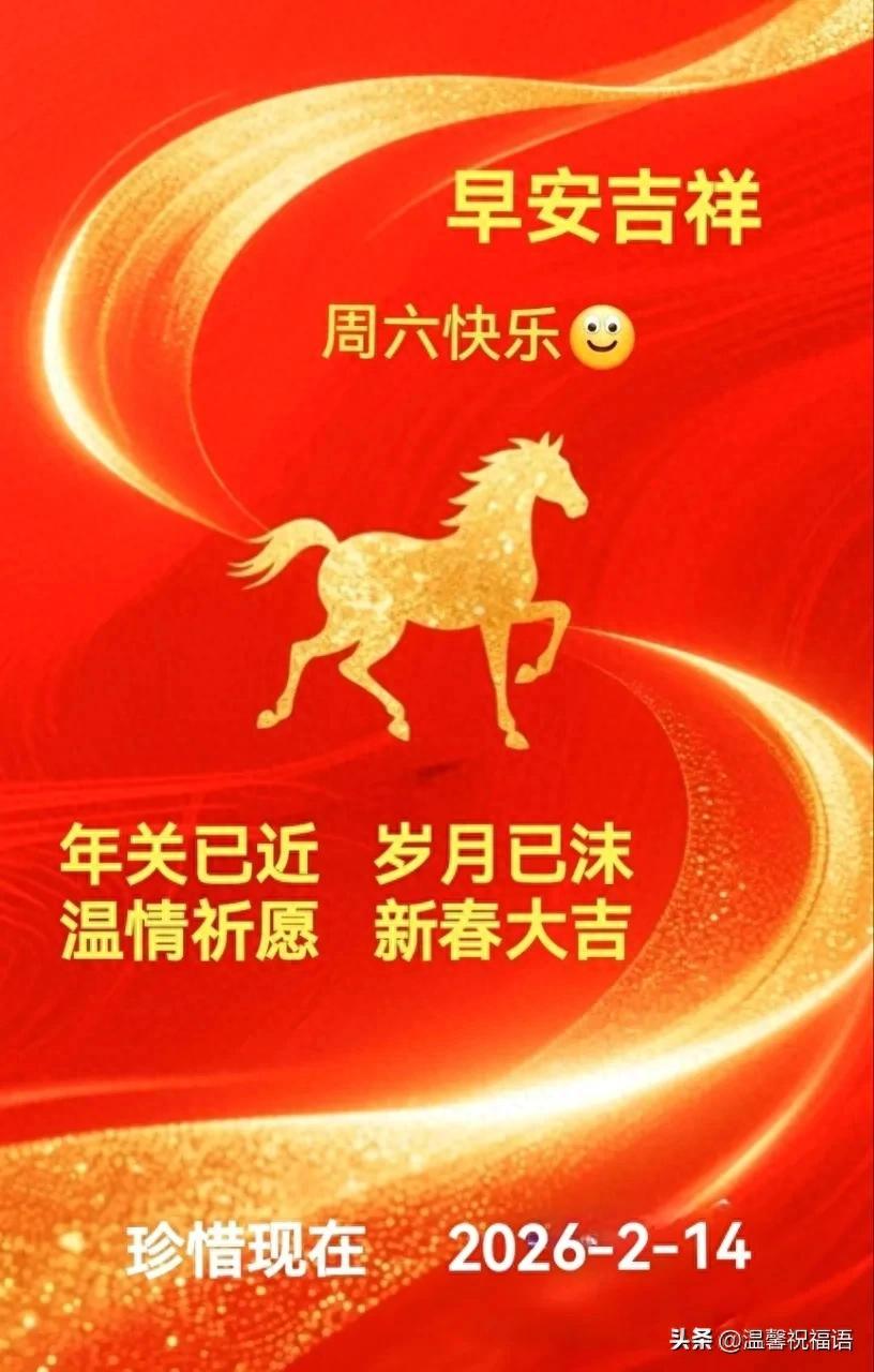 週六的清晨,暫別瑣碎,給心情放個假。願這冬日的暖陽,曬化你一年的風霜;願即將到來的馬年,如駿馬奔騰,前程萬里。 祝闔家安康,萬事勝意,新春大吉! 週六快樂