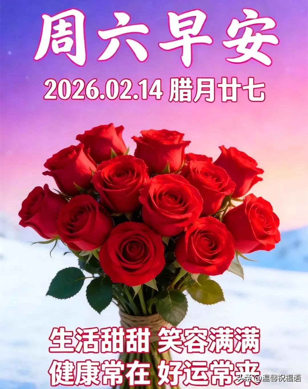 新的一天,新的心情,新的生活,全新的你。早呀~年就要到了,團圓也步步靠近,願你今天擁有好運氣,對一切充滿感激,喜歡美好也喜歡自己。情人節,宜愛人,也宜愛自己