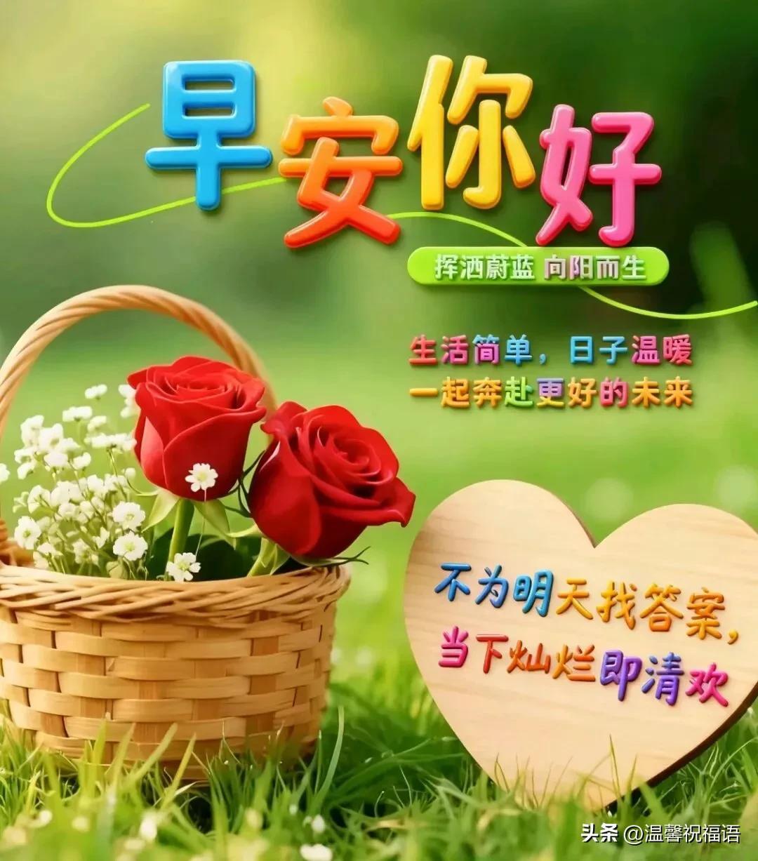 生活不必富裕,但願事事如意;人生不必相聚,但願常常想念。緣來自天意,情源於人意,問候滿懷心意,牽掛充滿真誠。早上好!