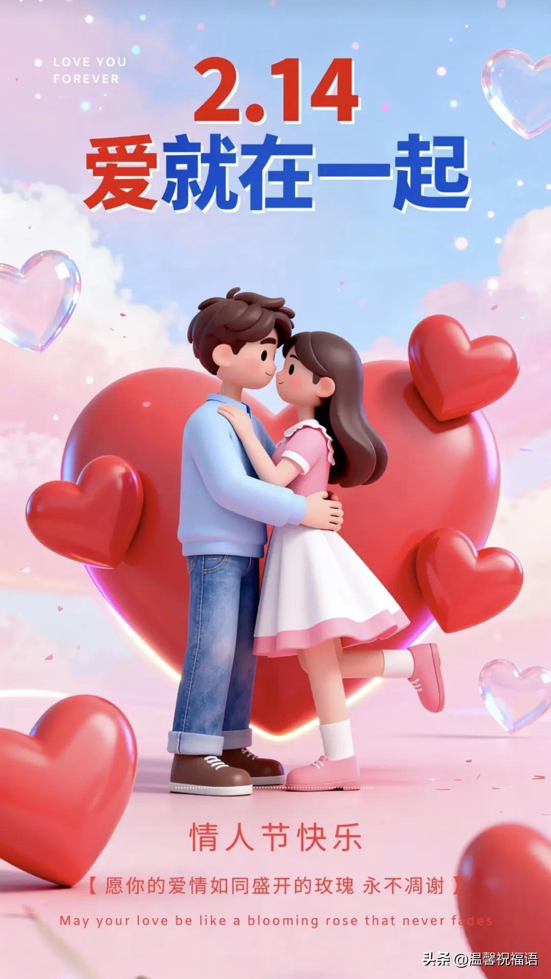 情人節快樂!生活有愛才溫暖,人生有夢才精彩。願你每一天都奔走在自己的熱愛裏,踏實、上進、自由、坦蕩,所求皆如願,所行皆坦途,未來可期☀️。