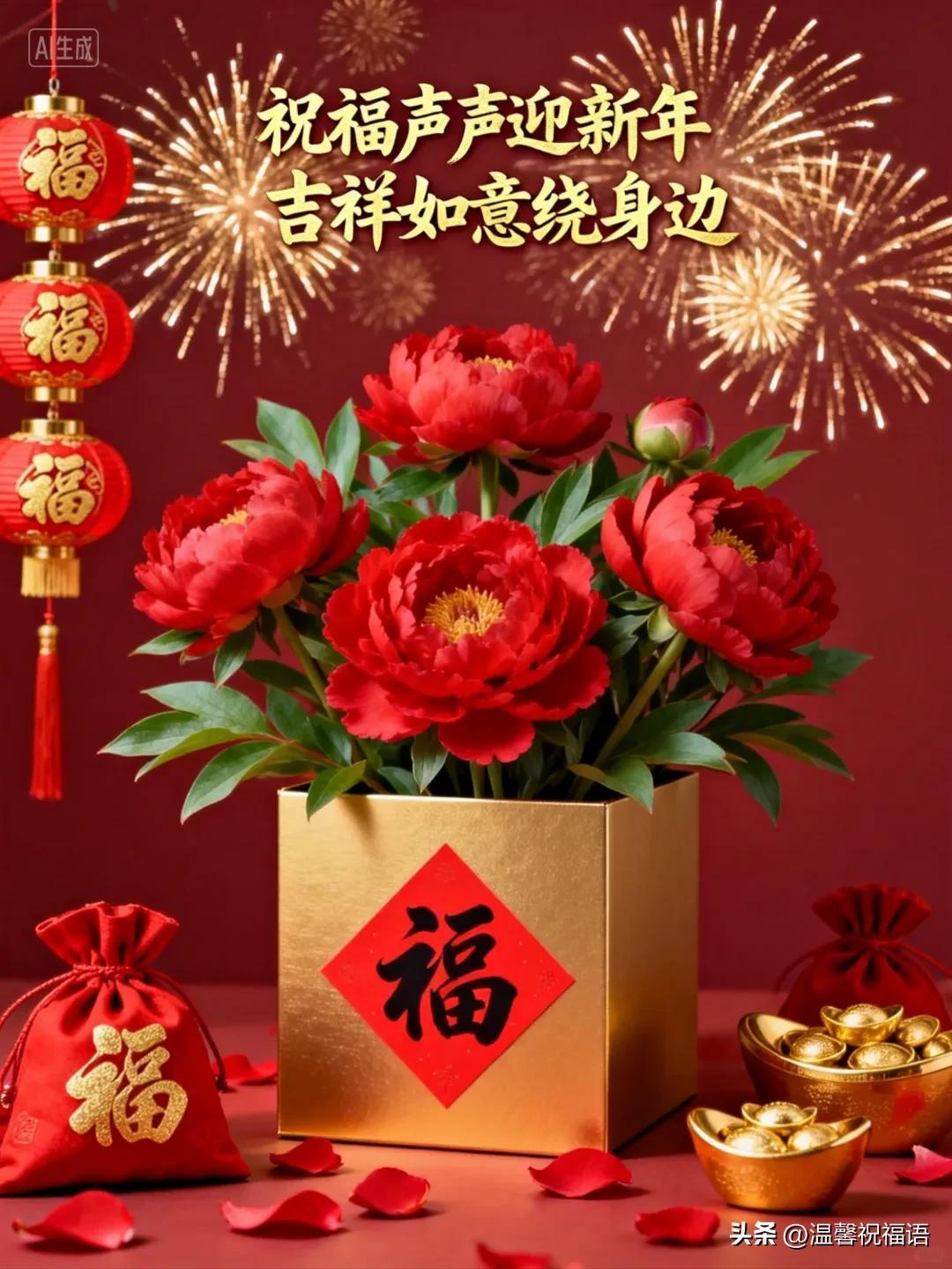 12、除夕夜裏送福忙,初一清晨問安康。微信祝福不打烊,拜年趁早情意長。心到,意到,情也到,祝你財到,運到,福也到,生活美滿樂逍遙!