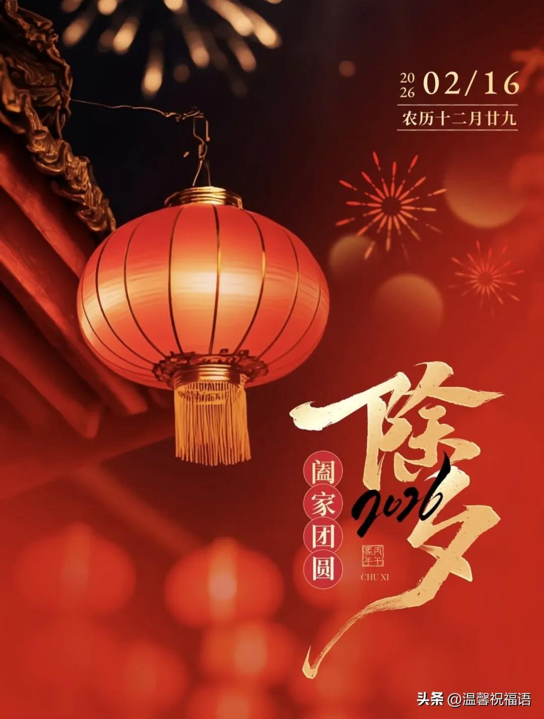 9、燈火萬家,除夕團圓!無論身在何方,心永遠在一起❤️。願你卸下一身疲憊,收穫滿心歡喜,丙午年龍馬精神,事業騰飛,生活美滿,福壽安康!