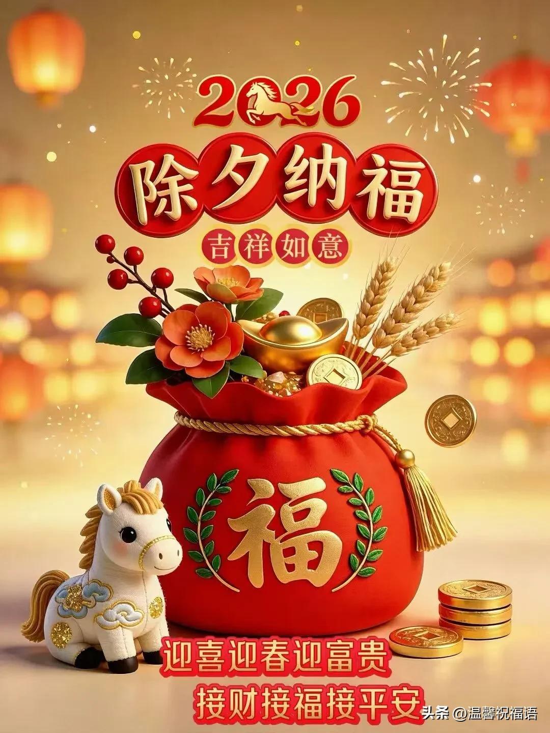 除夕除夕除舊歲,祝你大富又大貴!除夕除夕除疲勞,祝你身體棒嗷嗷!除夕除夕除壓力,祝你事業好運氣!除夕除夕除煩惱,祝你心情天天好!除夕快樂~!