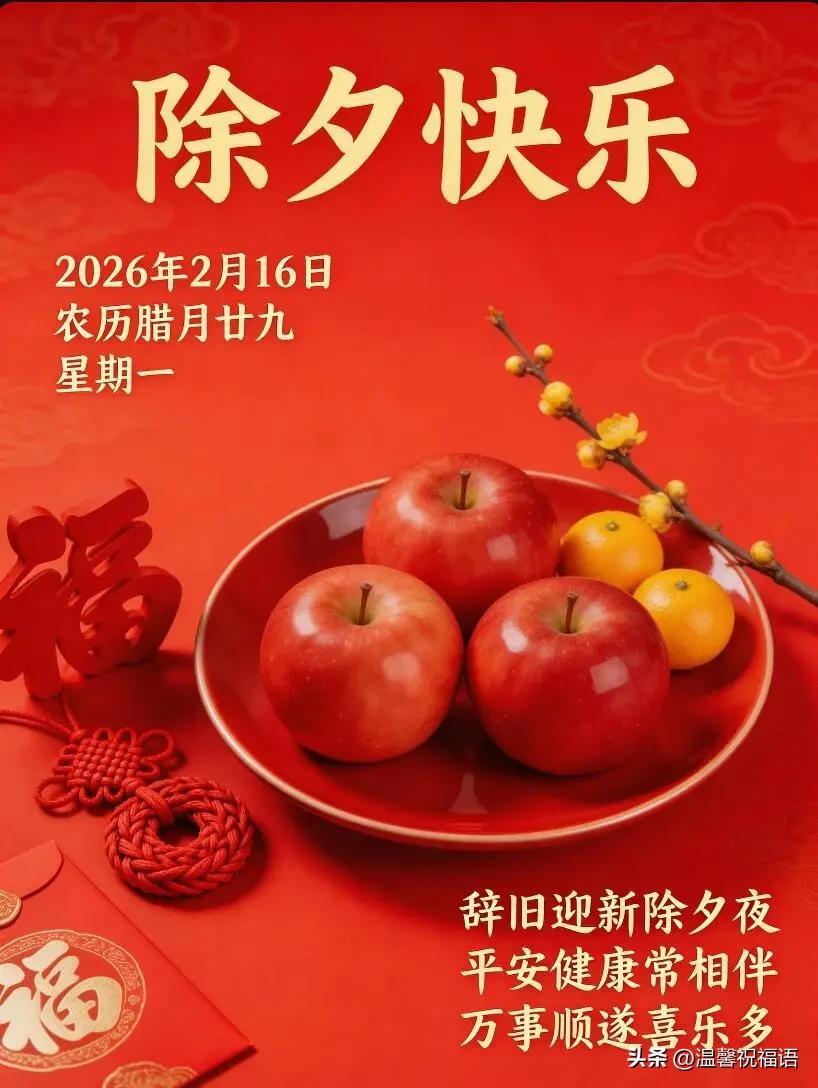 時光荏苒除夕到,謝舊迎新喜事多。家家戶戶盛神臺,燃爆竹聲喜樂來。心懷感恩倍溫暖,祝福傳遞到彼岸。除夕祝福送給你,闔家安康萬事順!☕️☀️❤️