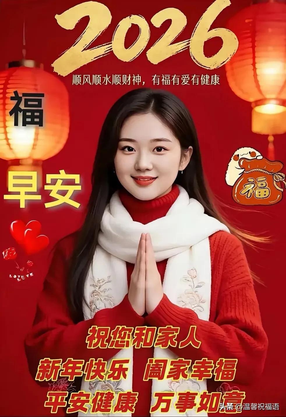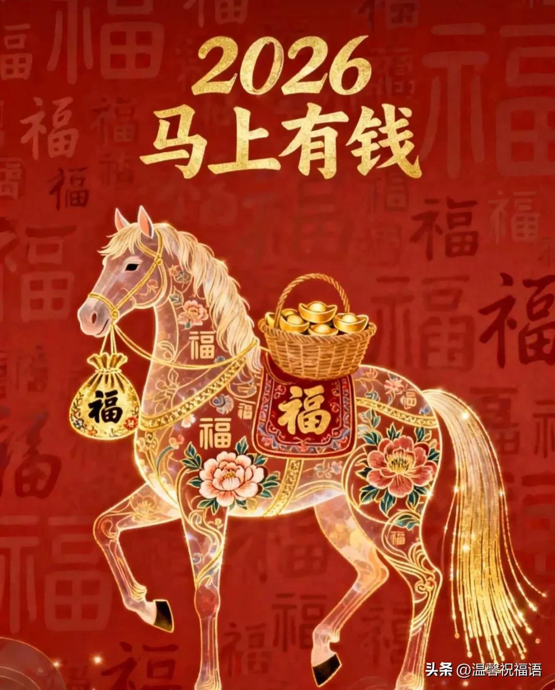 新年到,財富到,祝你福星當頭照;心情好,身體好,祝你生活更美妙;鈔票多,家庭和,祝你日子紅火火;祝福意,請笑納,祝你幸福早發達。新年快樂!