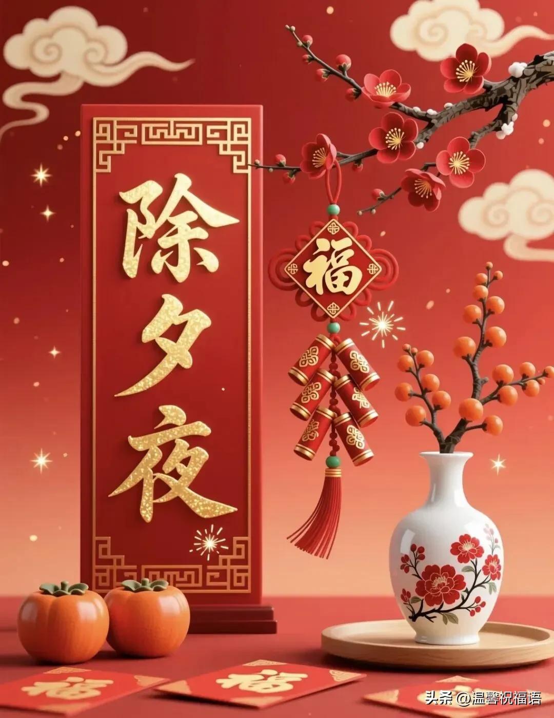 除夕之夜佳餚香,杯盞交錯話衷腸。笑迎新歲驅黴運,辭舊圖新福綿長。願你歲歲平安樂,事事皆順美景藏。新年共譜和美曲,幸福快樂永安康!