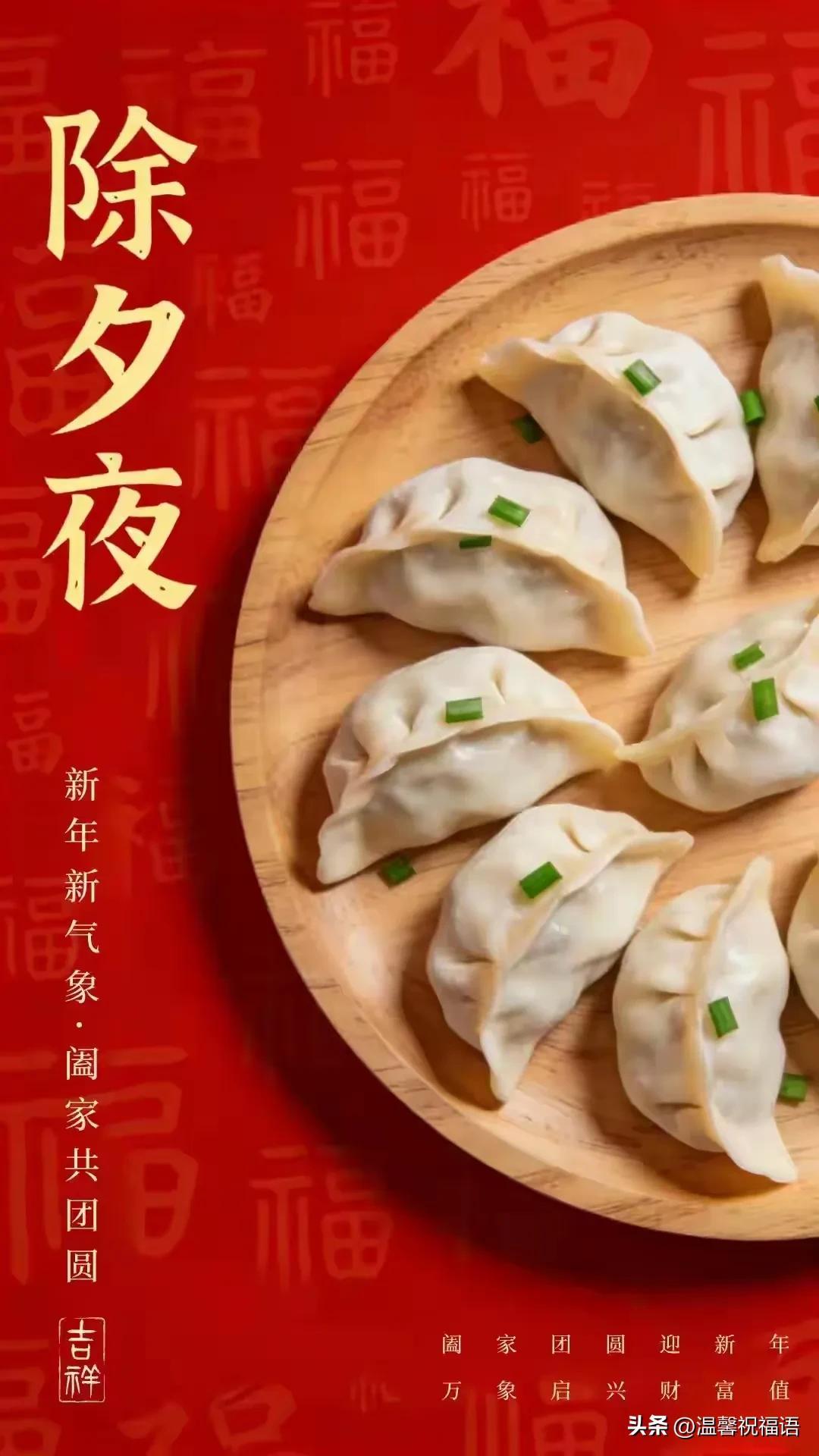鑼鼓敲響吉祥年,鞭炮陣陣迎新春。煙花綻放人歡笑,人壽年豐又一年。佳餚美酒都嚐遍,玉盤水餃圓又圓。全家齊聚電視前,除夕鐘聲伴笑顏。祝你年年有餘人康健,生活幸福快樂來!