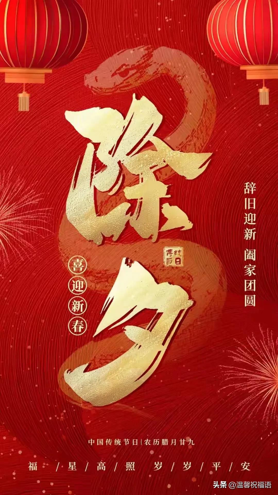 瀟灑揮一揮手,跟龍年輕輕道別。除夕之夜,讓歡樂開啓蛇年的大門,廣納福祉財源;讓喜悅寫下新春的祝福,萬事如意亨通;讓團圓爲佳節畫龍點睛,全家幸福安康!