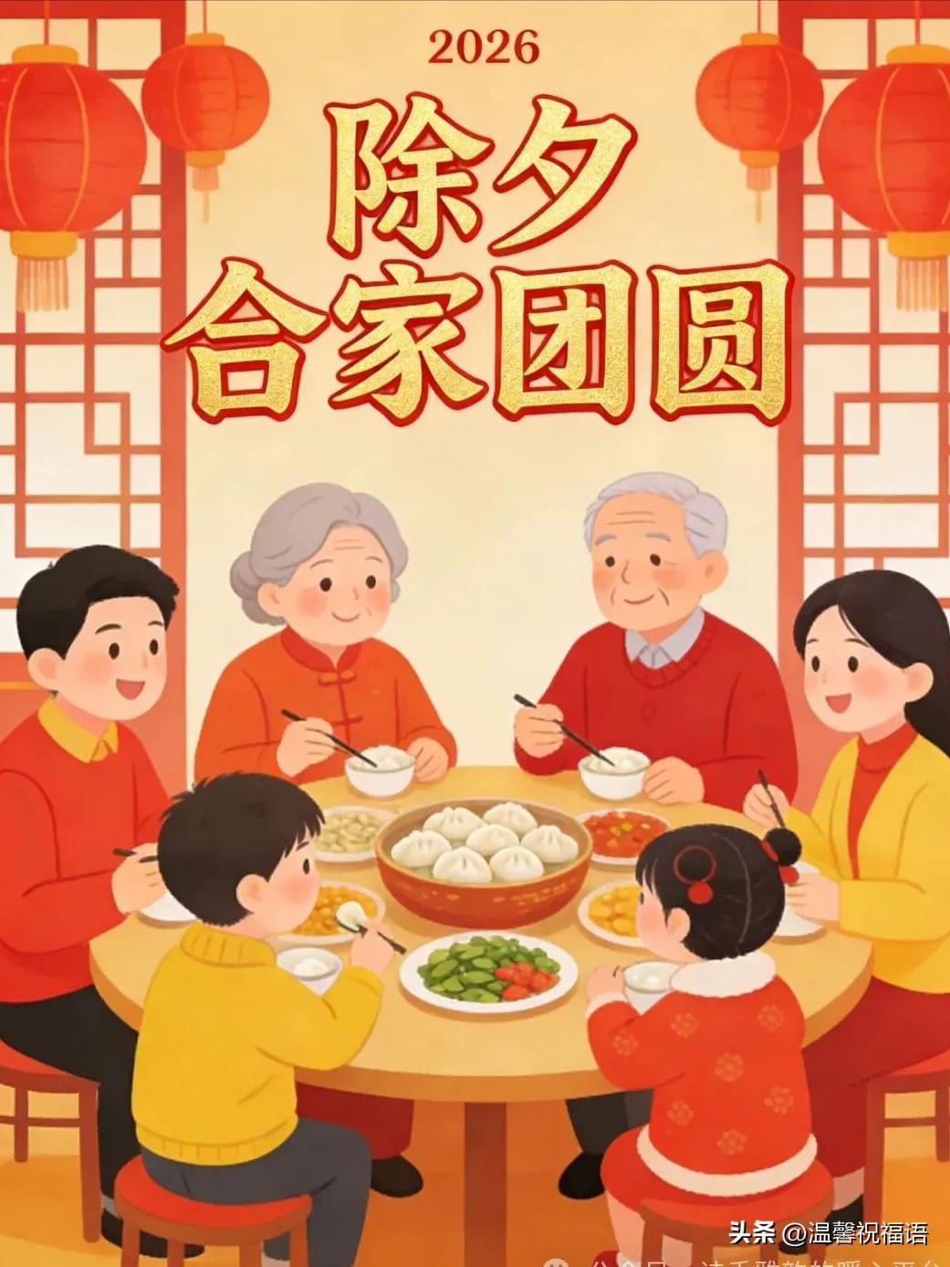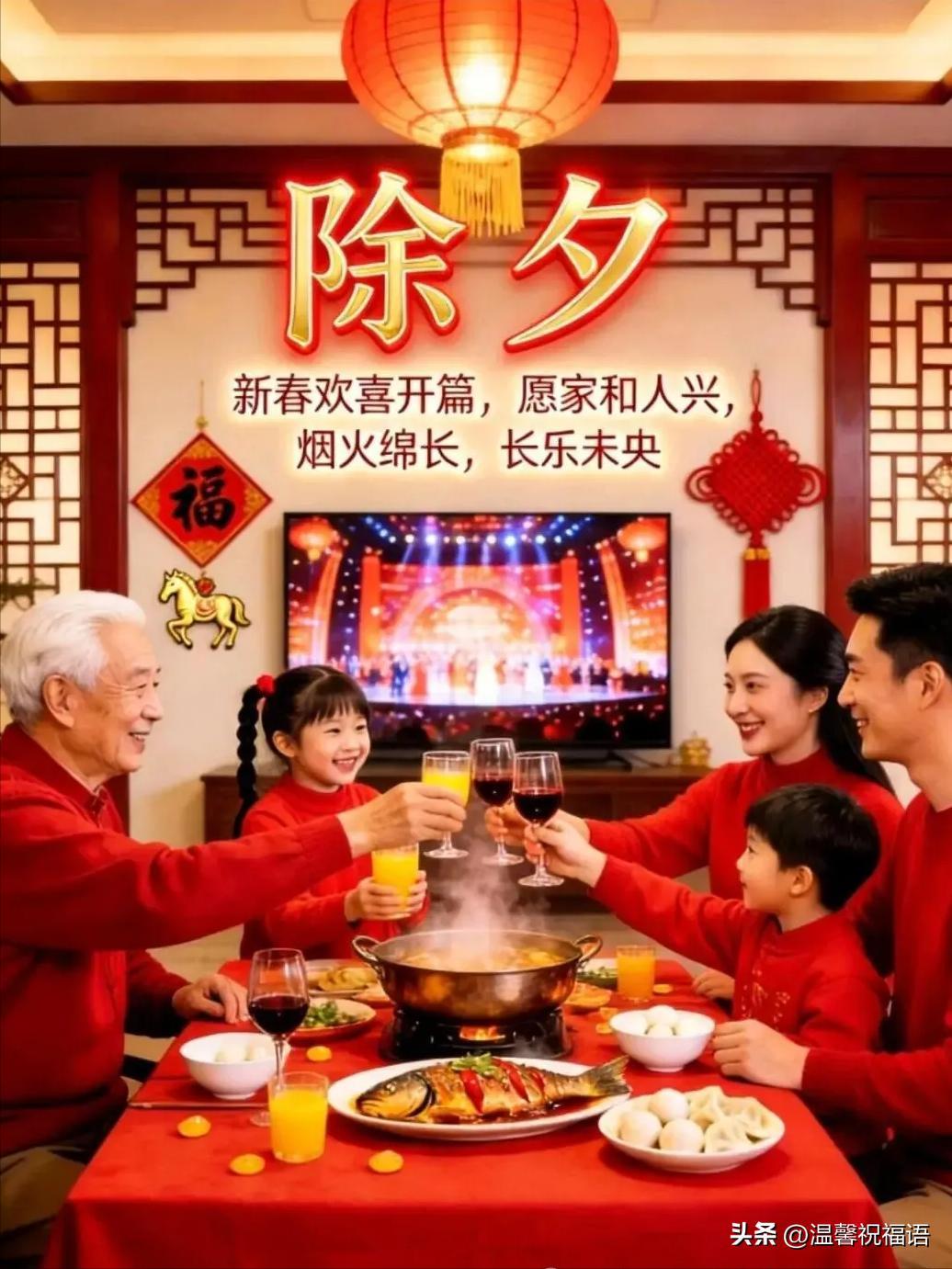除夕到,祝福到,除夕除夕,除去煩惱,迎接希望,希望親人們,朋友們,歲歲常歡喜,萬事皆如意,願2026年一切如願,事事順心,好運連連!萬事如意!