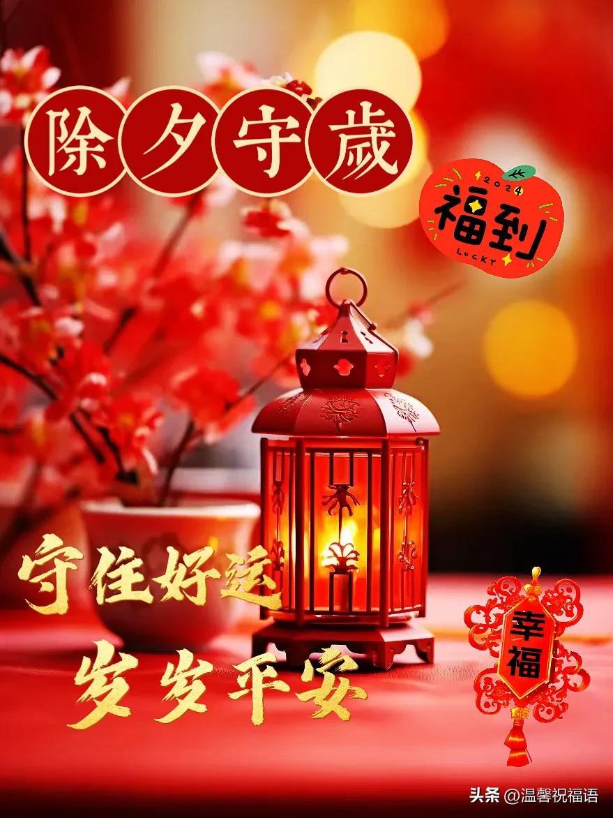 除夕夜,好運連,新年又到換新顏;事如意,多賺錢,福運一年又一年;短信響,送祝願,幸福生活比蜜甜。新年好!