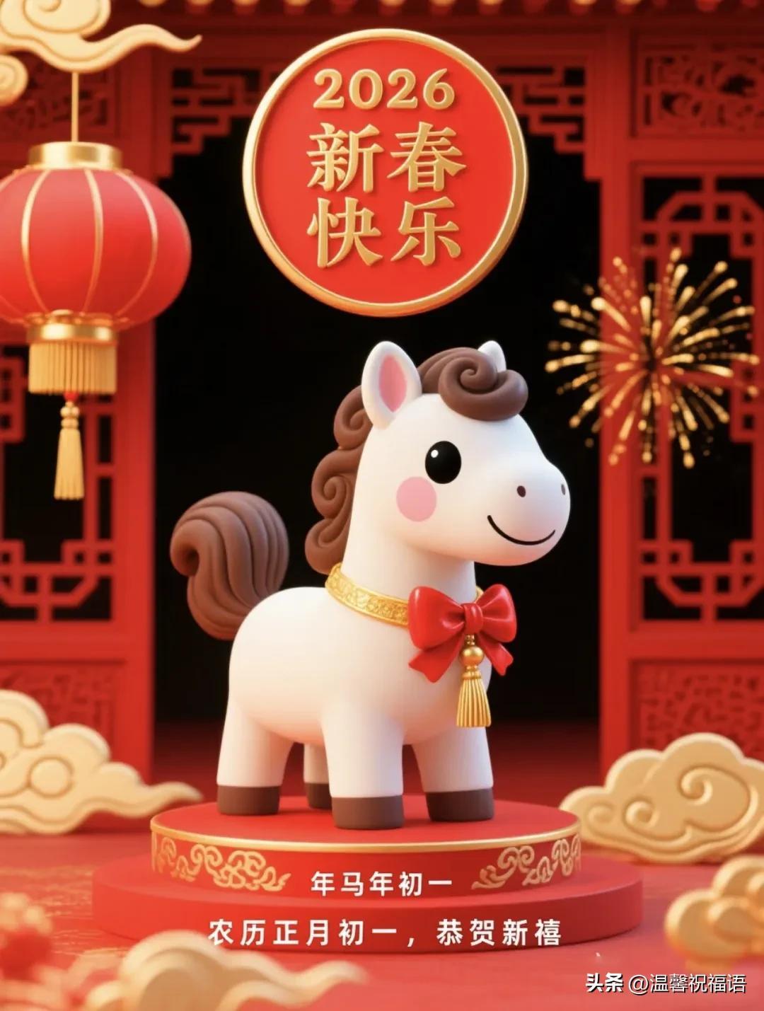 7、正月初一,福暖人間! 辭舊迎新之際,金馬踏福而來。願你這一年:心中有夢,腳下有路,馬到功成;身邊有愛,眼裏有光,歲歲安康!❤️