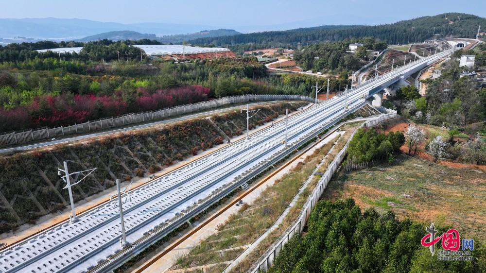 渝昆高鐵全長約700公里,其中雲南段長388.6公里,是雲南省內首條時速350公里的高速鐵路,全線建成通車後,重慶到昆明的行車時間將壓縮至兩個半小時左右,對促進成渝地區雙城經濟圈與滇中城市羣之間互聯互通,推動沿線地區經濟社會高質量發展具有重要意義。(供稿人:劉武林、信思想)
