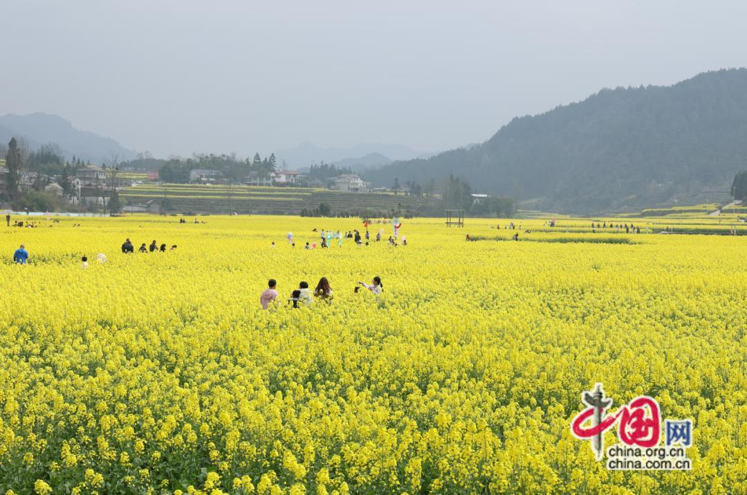 徜徉花海之中,遊客們漫步賞景、頻頻打卡,感受着春天的氣息與鄉村的活力。