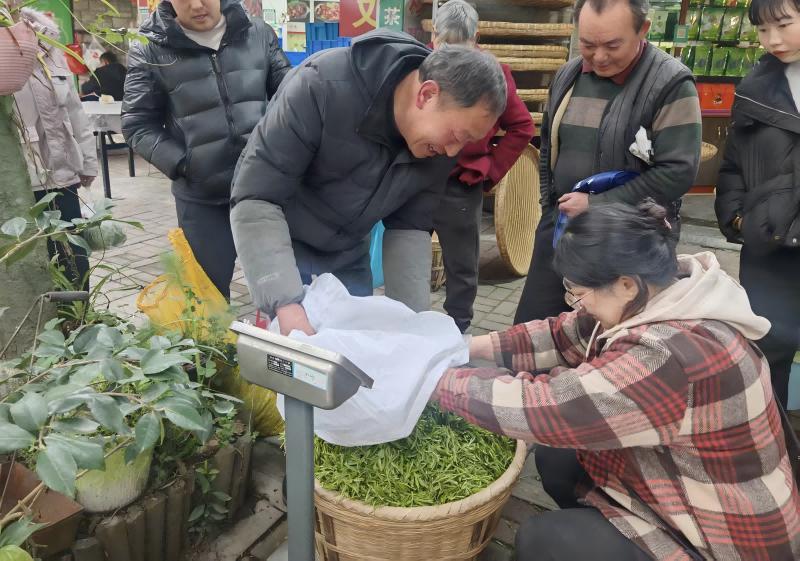 山間茶園裏,茶農們腰挎茶簍,手指翻飛間,一芽一葉、一芽二葉的優質鮮葉精準入簍。採摘下來的鮮葉被迅速運送至村級收購點。收購商們現場稱重、定價、結算,流程透明高效。鮮葉從枝頭到市場的流通環節被極大縮短,實現了“清晨在茶園,中午進工廠,傍晚變茶香”的快速轉化。
