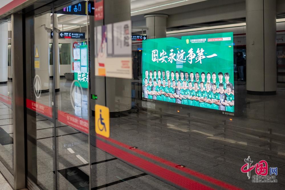 北京地鐵公司聯合北京國安足球俱樂部,將地鐵3號線工人體育場站全面煥新爲北京首個足球主題站。中國網記者 鄭亮攝