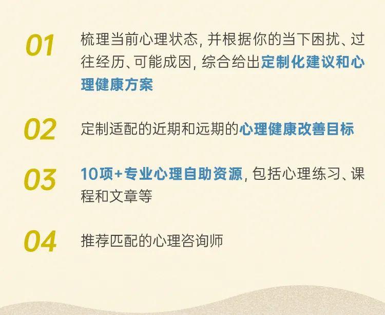 「心理評估」能夠幫助你梳理當前心理狀態,給出專業化的建議和心理健康改善方案;也能夠幫助你更加明確哪些議題是最值得關注,議題可能的原因是什麼;以及如果你需要尋求心理諮詢師的幫助,什麼樣的心理諮詢師是最適合你的。
