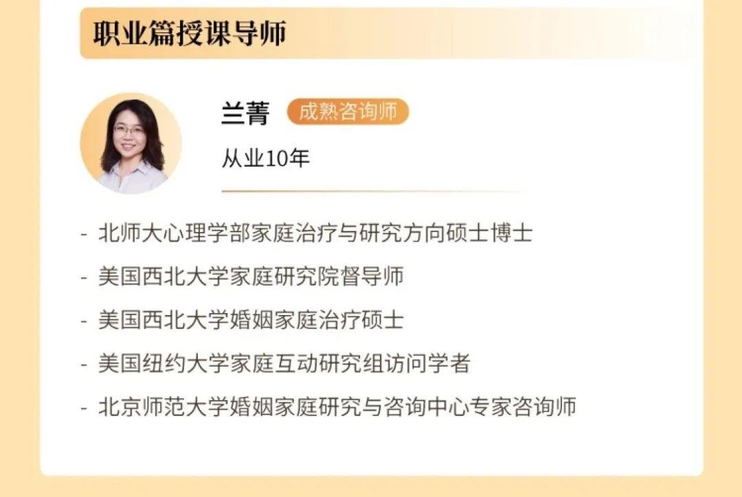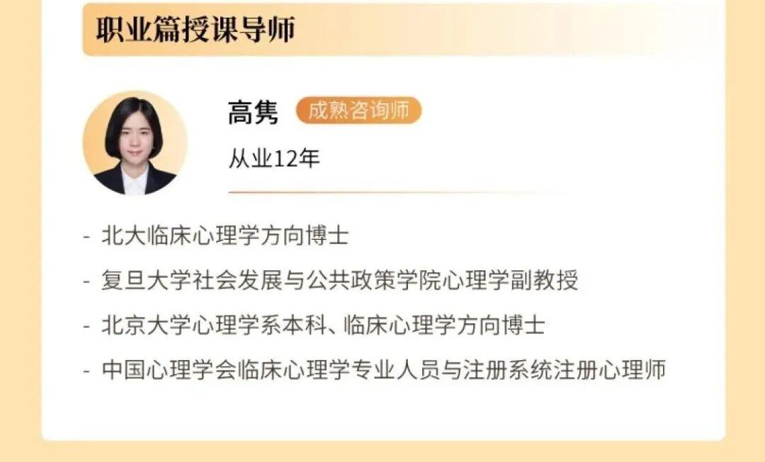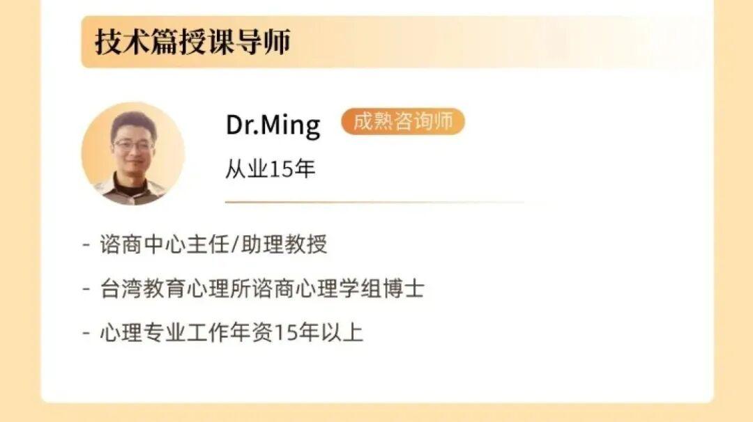 由4位平均從業10+年的專業心理諮詢師聯合授課,從職業、技術、流派三方面系統帶你瞭解心理諮詢師,全方位解決你的疑慮與困惑。