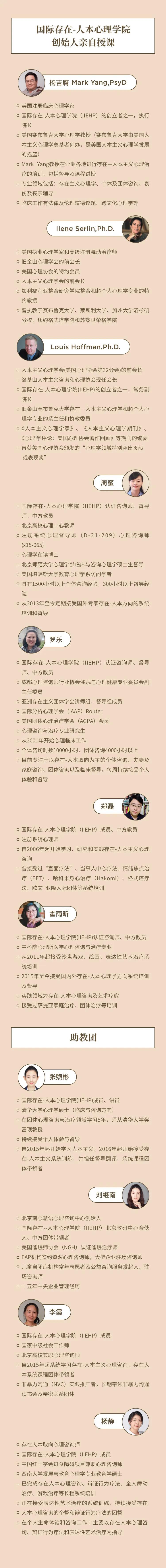 我們特別邀請到來自國際存在-人本心理學院(IIEHP)的導師團隊,他們全都在人本領域鑽研數十年,在專業理論還是臨牀案例上都有豐富的積累。
