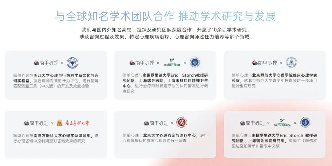 我們與國內外知名高校、組織及研究團隊深度合作,開展了多項心理諮詢師勝任力培養領域的學術研究。