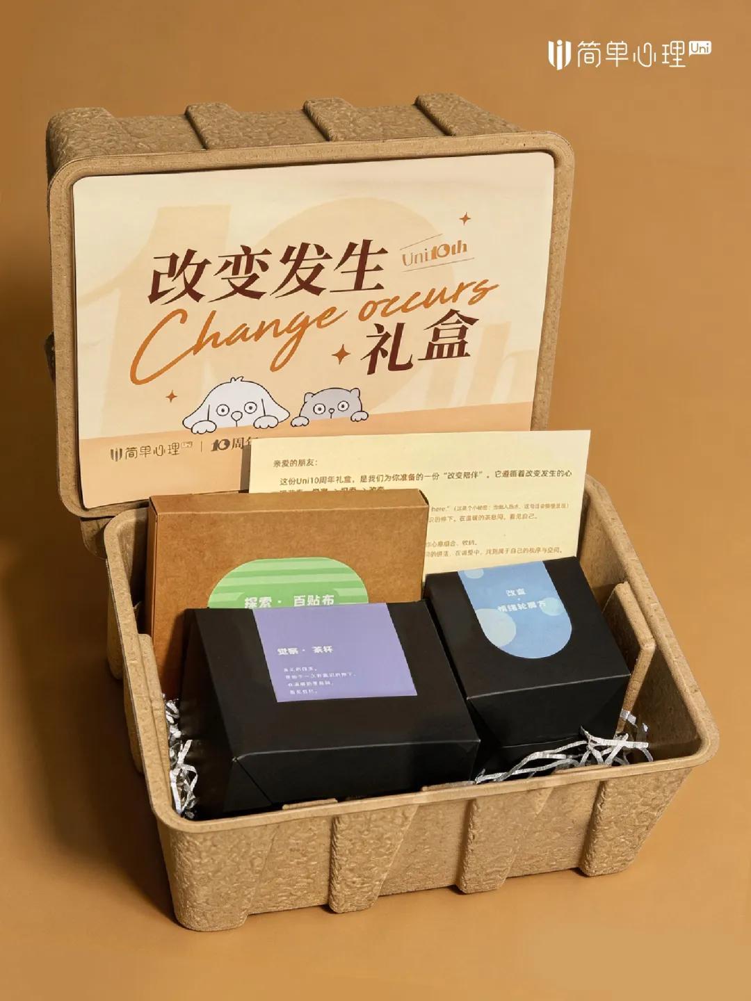 Uni10週年,我們也準備了一份慶祝禮盒,是我們爲你準備的一份“改變陪伴”。它遵循着改變發生的心理節奏:覺察 → 探索 → 改變。