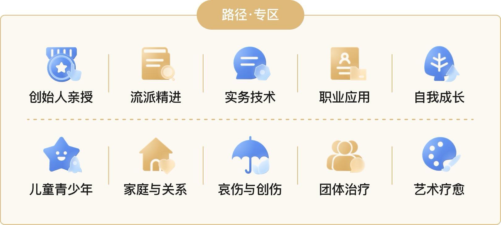 - 課程以更清晰的“專區”形式重新組織,變得更好找; 我們將課程以更清晰的“專區”形式重新組織,無論是初探心理學的大門,或是深入某一流派的精髓,還是尋求特定主題的提升,你都能夠更順暢地找到屬於你的路徑。