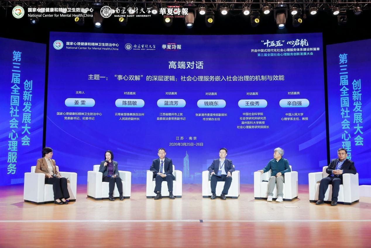 中國網心理中國3月27日南京訊(記者 蘇向東)四大“國心論健”專題研討會、30場圓桌對話、8場主題工作坊……3月25日至26日,第三屆全國社會心理服務創新發展大會在江蘇省南京市召開,以“‘十五五’心啓航開啓中國式現代化社會心理服務體系建設新篇章”爲主題,400餘位專家學者圍繞社會心理服務體系建設熱點難點問題深入交流探討,共繪“十五五”社會心理服務宏圖。