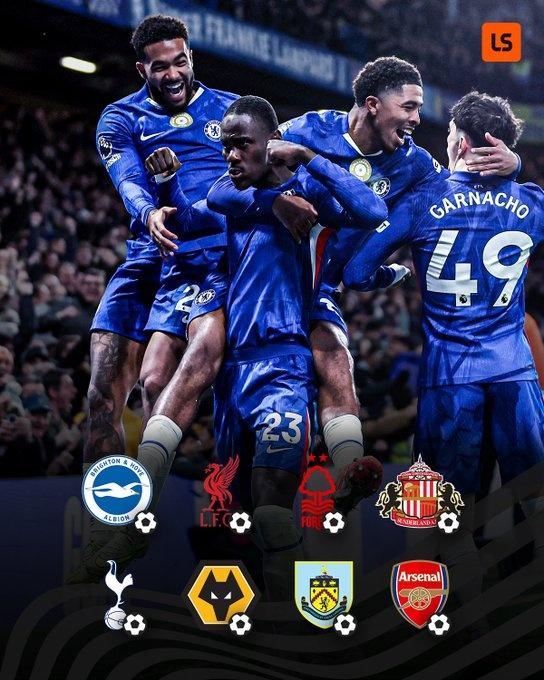 切爾西連續8場英超首先打破僵局,打破了球隊2024年4月所創造的連續7場聯賽首先取得進球的紀錄。