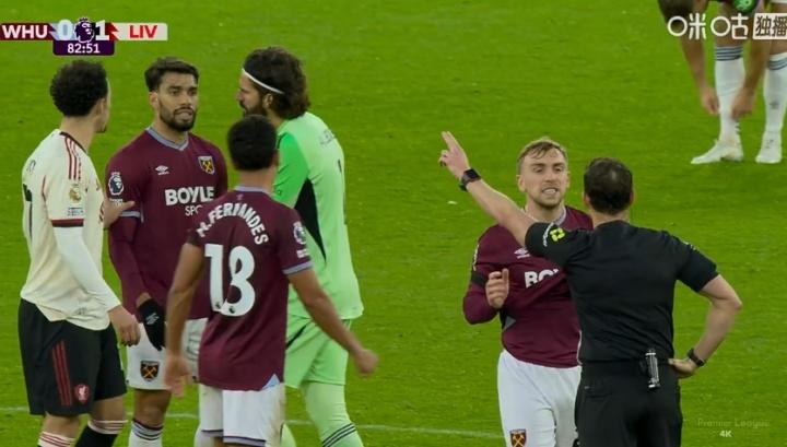 12月01日訊 英超第13輪,利物浦2-0戰勝西漢姆聯,西漢姆中場帕奎塔比賽中因抗議判罰,被主裁連出兩黃,紅牌罰下。