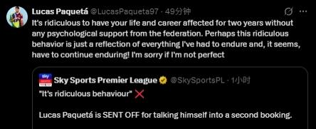 賽後,帕奎塔連續更新了個人社媒,他先是用葡語發佈動態,表示:“我明白現在在外人眼裏我得扮演“壞人”的角色,跟這些年在我生活裏、在我的心理上造成的所有創傷共處真的太難了!