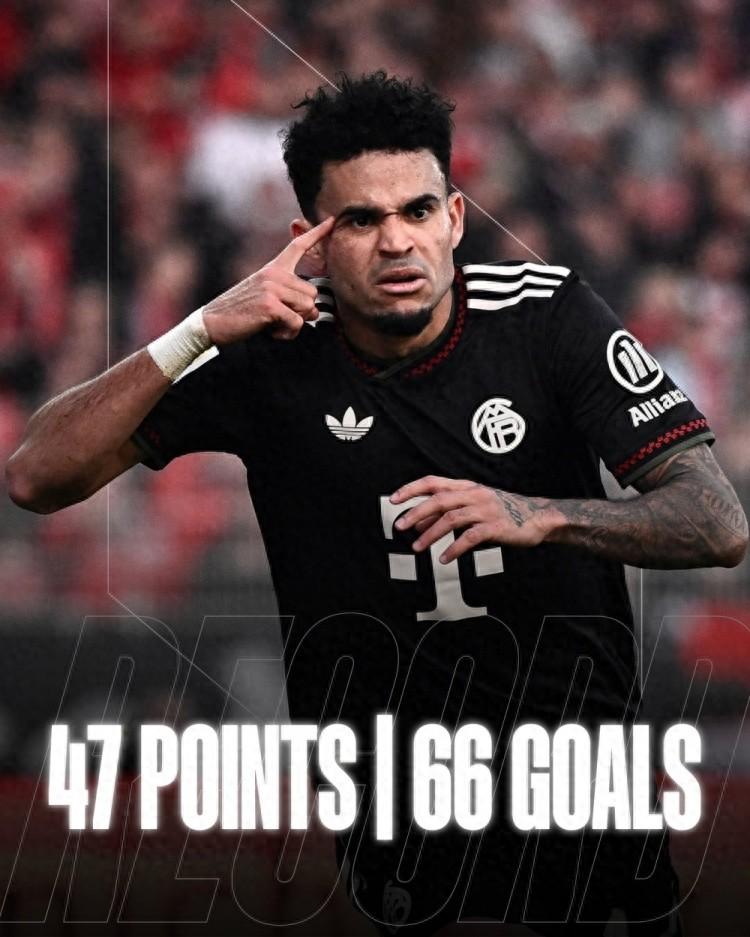 拜仁本賽季德甲上半程17輪比賽積47分,打進66球,創造德甲上半程最佳戰績,拜仁官方社媒曬海報慶祝。