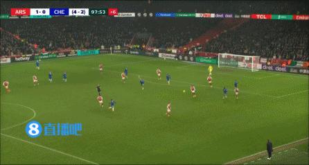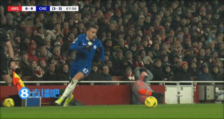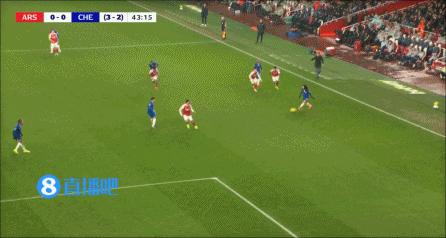 第90+7分鐘,切爾西大舉壓上進攻,阿森納反擊,賴斯左路橫傳,哈弗茨單刀機會過掉門將打進空門!阿森納1-0領先切爾西↓